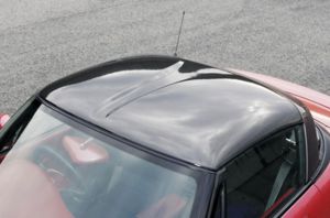 純正ルーフに貼り付けるカーボン製ルーフパネル。