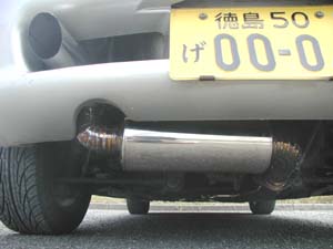 | インプレッション | バンパーの左のあみの部分に出口があるという斬新なデザインです。 世界で一つしかないというのが良いですね。 パイプをかなり曲げてますが、排気の抜けは問題ないように思います。 低音が響く、かっこいい、上質な音です。うるさいという人もいますが。 |